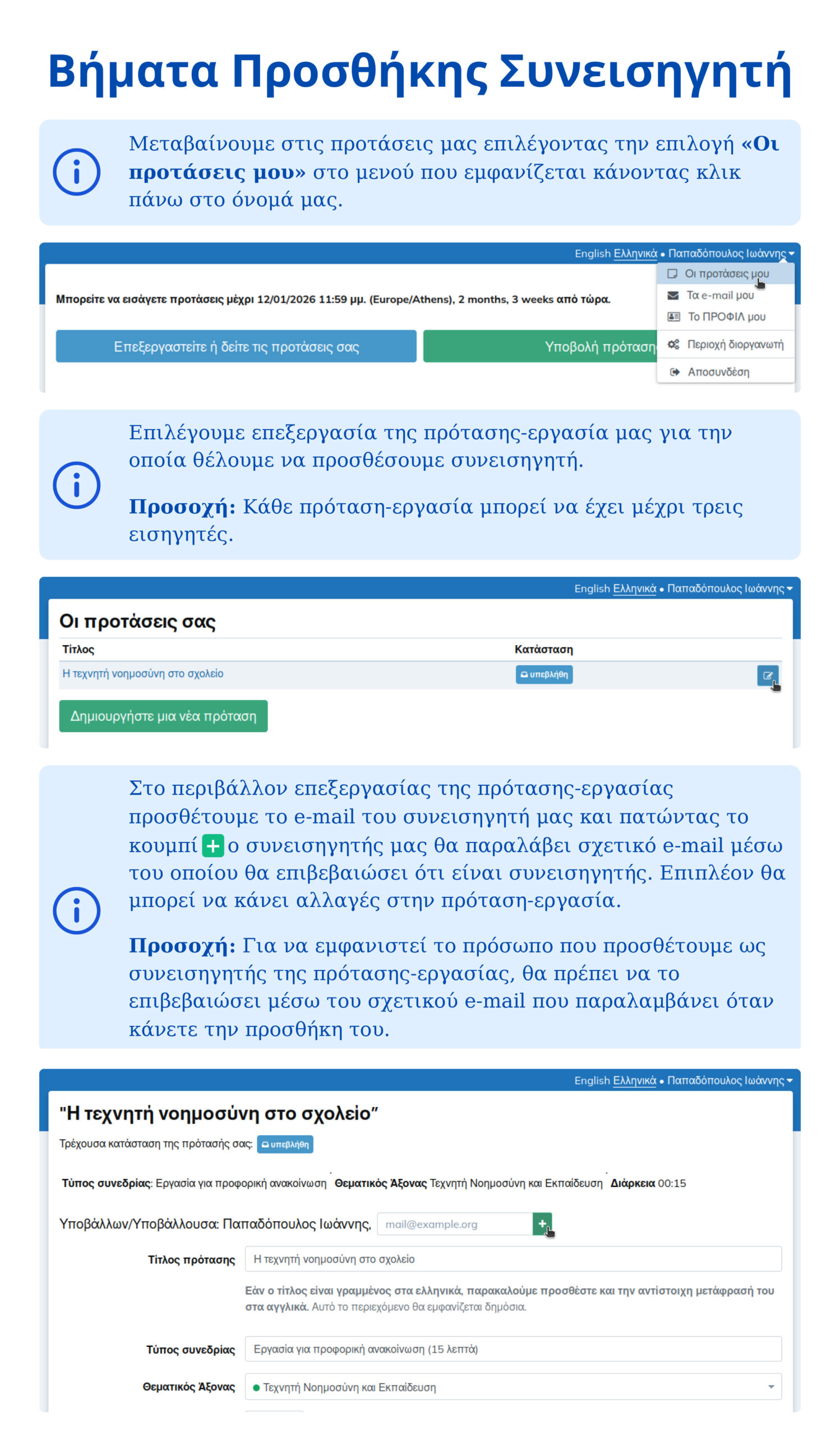 Πώς μπορώ να προσθέσω επιπλέον εισηγητές μετά την υποβολή μίας πρότασης-εργασίας;
